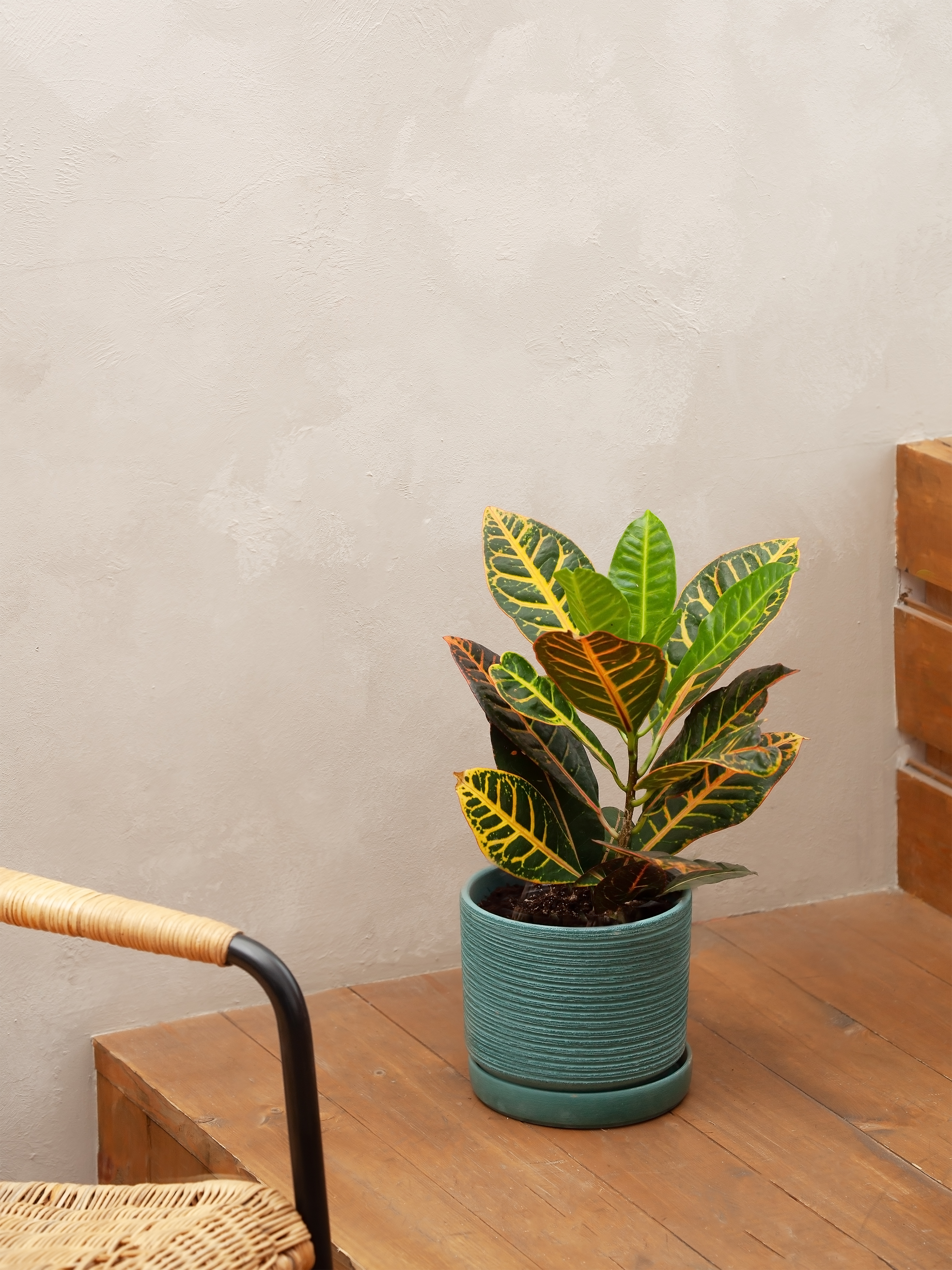 Кодиеум «Петра» достаточно быстро растет и охотно ветвится, что позволяет ему даже в солидном возрасте выглядеть пышно и интересно.