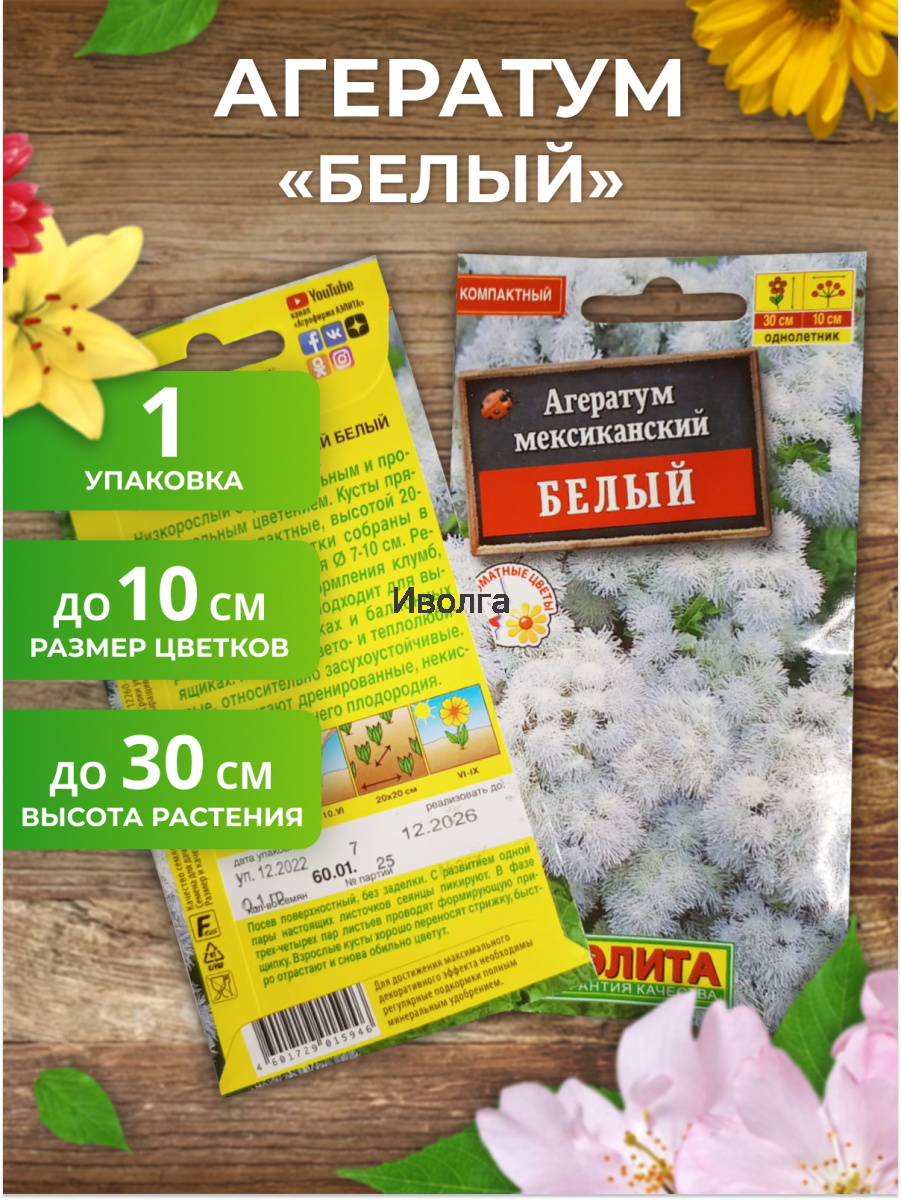 Агератум мексиканский "Белый" - душистое цветочное растение. Торжество его длится всего один год. Но за это время можно насладиться цветением, успеть собрать семена сорта, чтобы на следующий год вновь осуществить его посадку в клумбу или в цветник. Кустики имеют многочисленные стебли, каждый из которых увенчан пушистым комочком. Сорт выглядит очень нежно, отлично смотрится рядом с другими цветочными растениями.
