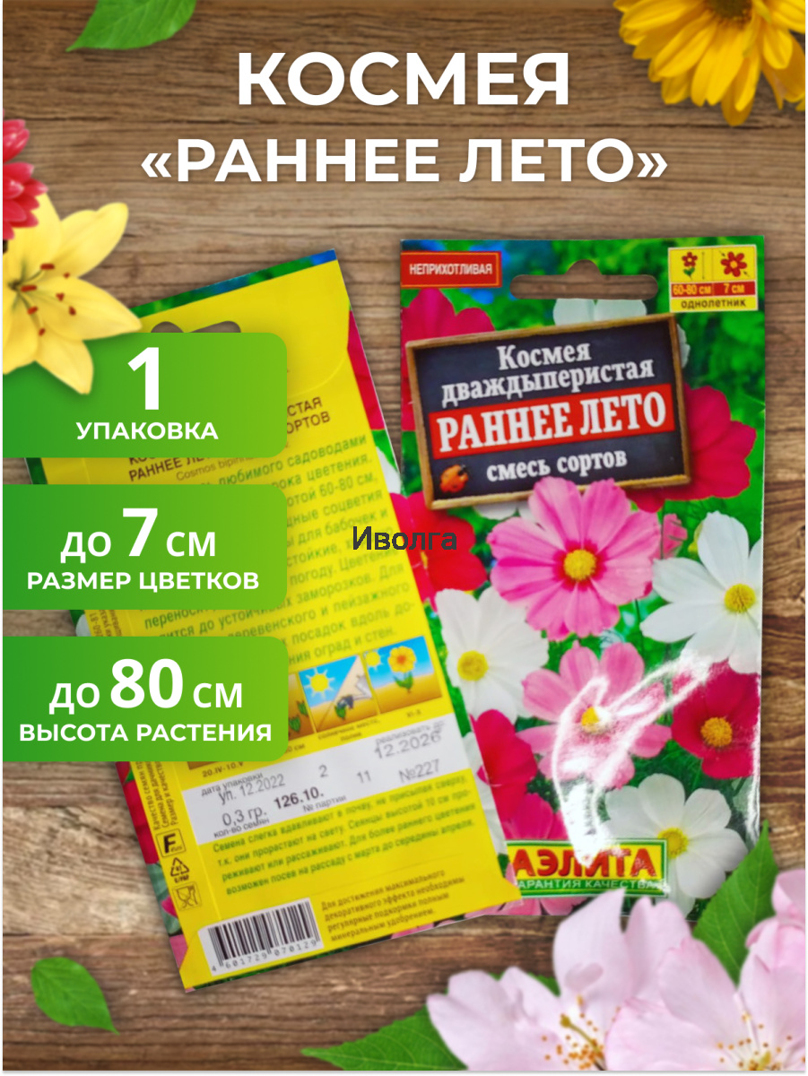 1. Космея дваждыперистая "Раннее лето" смесь сортов — 1 шт.