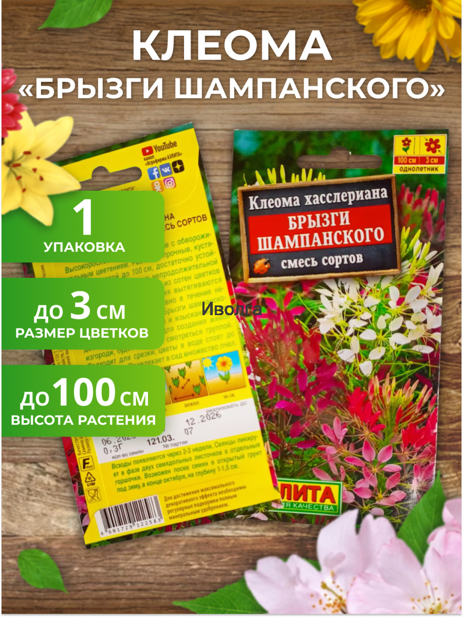 1. Клеома хасслериана "Брызги шампанского" смесь сортов — 1 шт.